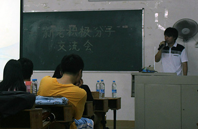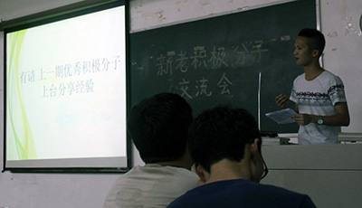 大会由学生党支部支委谭国龙主讲,他为各新老积极分子普及了关于党的相关知识,并介绍大学生加入中国共产党的程序、条件以及注意事项。随后,上一期的优秀积极分子分享了他们的学习经验,并希望本期的积极分子能通过党课的学习,进而提升自己的思想道德修养,实现自己的人生价值。