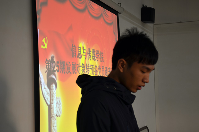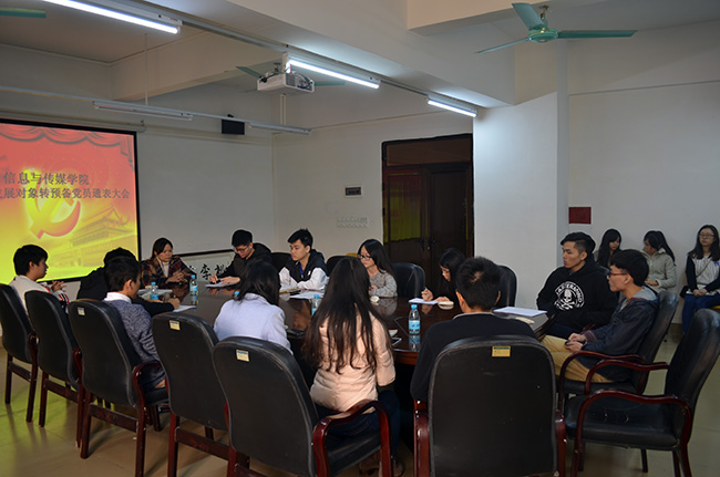 12月16日,信息与传媒学院学生党支部在信息楼三楼教师会议室召开了第25期发展对象转预备党员通表大会。本次会议由11名同志提出了申请。会议由院学生党支部组织委员许俊主持,出席此次会议的有学生党支部书记何祉谕,全体学生党员和11名发展对象。