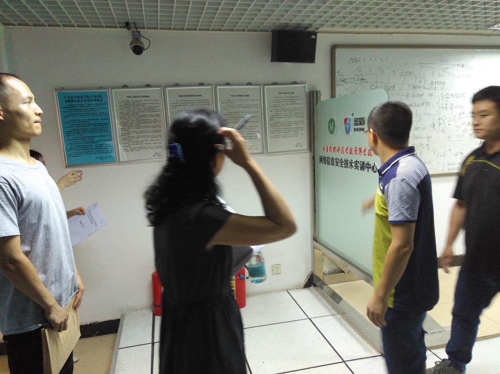 网络安全实验室在经学院内部论证后,再次迎来学校、学院和企业三方组成的专家组的验收检查。参与本次验收检查的人员有:学校设备处钟立华处长、黄贵明老师;资产处杨帆、梁好老师;采购办陈键聪老师;williamhill英国官网院长原峰山、副院长谌頏、陈易平老师;蓝盾信息安全有限公司尹经理等人。