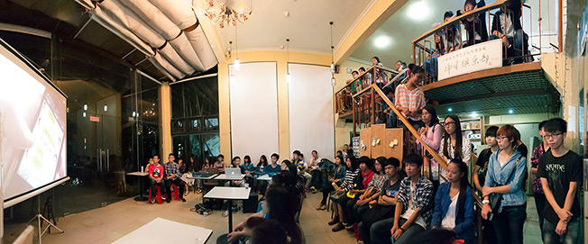 2013年11月6日周三晚,由计算机科学与技术系主办,计算机系“第六印象视觉设计工作室”与“天河学院摄影协会”承办,特邀国内3D魔幻艺术绘画设计师汤鹏程同场分享关于艺术设计的表面之后。