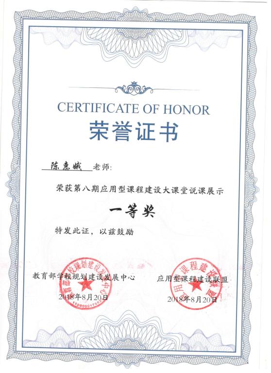 (通讯员 陈惠娥)日前,由教育部学校规划建设发展中心主办的“第八期应用型课程建设大课堂”在厦门举行,我校williamhill英国官网陈惠娥老师的“《前端设计》应用型课程改革与实践”说课展示荣获全国一等奖。