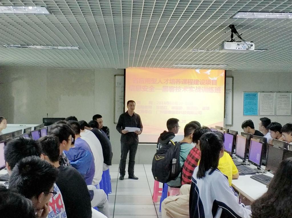 (通讯员 张艳红)基于 “省应用型人才培养课程建设”课题研究项目背景下,10月20-21日,williamhill英国官网特别邀请了广州砺锋信息科技有限公司来校,开展了一场“计算及信息安全-黑客技术实战”的主题训练班。参加此次实训有计算机学院谌颃副院长、张艳红老师,2018级软件工程、网络工程、计算机科学与技术和大数据专业等112名多学生。