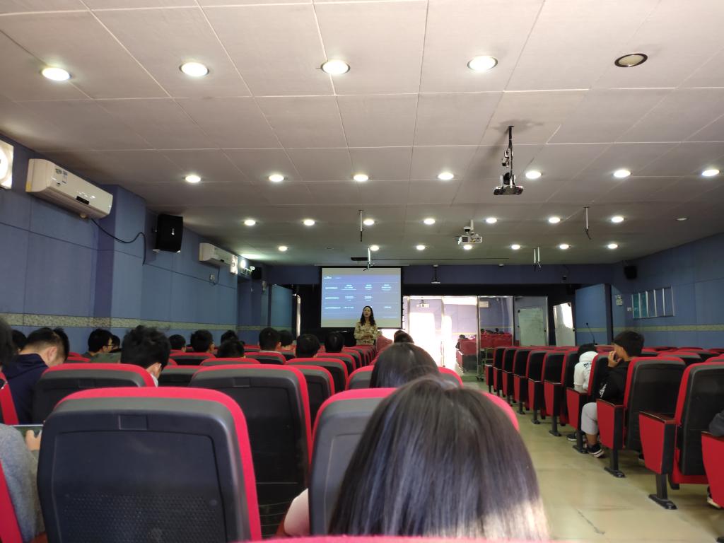 本次讲座就AI智能技术、AI智能产品、理论结合实践等方面进行了较为全面的讲解。讲座中,马经理以第四次工业革命为切入点,阐述了人工智能技术在各行业应用,对各行业的发展与变革的巨大推动力。随后,她介绍了百度大脑5.0、飞桨、小度助手、智能云、百度CSR等技术和产品,向同学们简单介绍了AI算法、语音交互技术、AR复原等前沿技术,并就AI技术在多个行业的应用进行举例阐述。马经理的语言幽默诙谐、贴近生活,同时在讲座中结合具体事例以及百度与高校的联合办学,讲解了实践,鼓励同学们勤于动手,积极参加项目,提升实践能力。