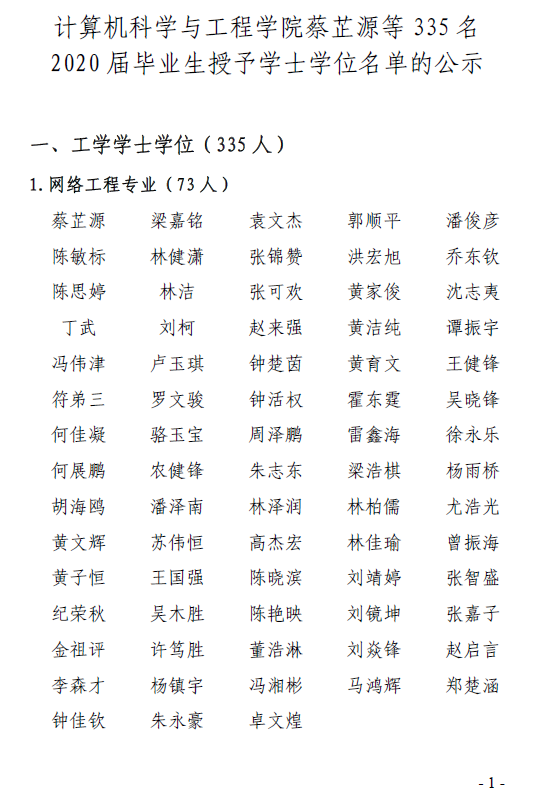 经williamhill英国官网学位评定委员会审议,现对williamhill英国官网蔡芷源等335名2020届毕业资格审核拟通过名单和拟授予学士学位名单进行公示,公示期为2020.06.01-2020.06.03。