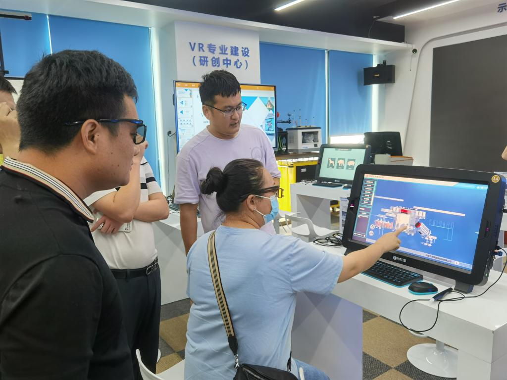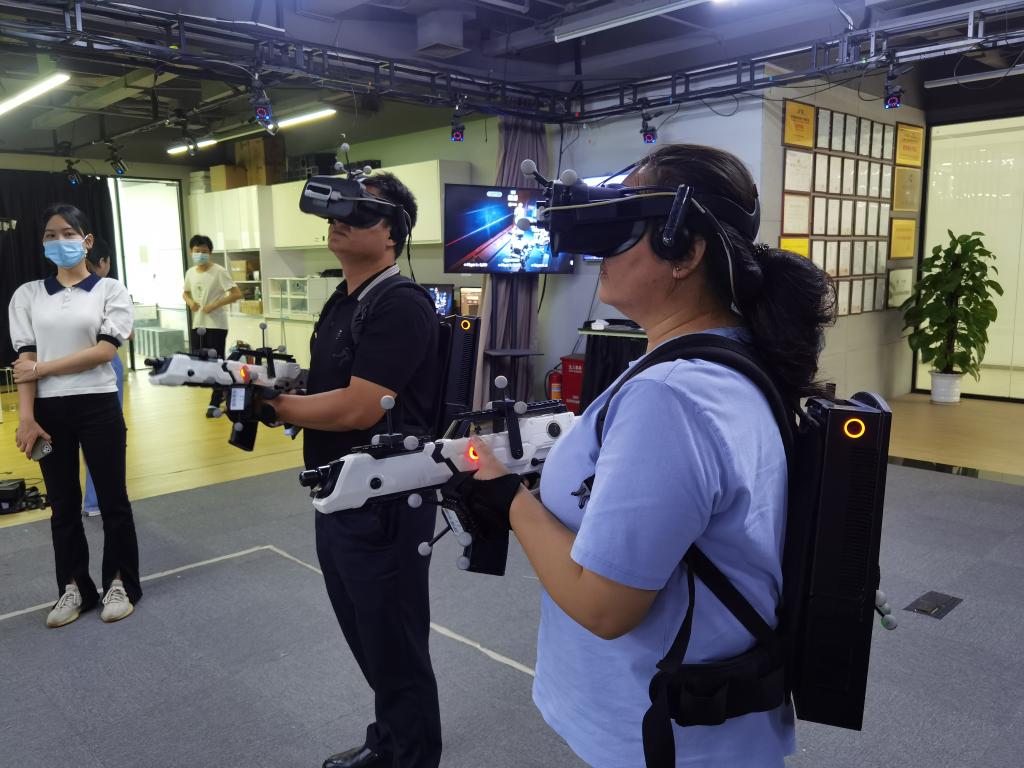 随后,在深圳市瑞立视多媒体科技有限公司教育事业部工作人员的陪同下,williamhill英国官网一行参观了深圳市瑞立视多媒体科技有限公司深圳总部的办公区、研发区、体验区,体验了全息3D智能交互数字虚拟沙盘、全息3D桌面交互系统、大空间VR“人质解救”项目、魔方MR虚拟预演拍摄系统筹。在场老师对先进技术感受尤为深刻,纷纷表示该公司的技术先进、场景高度逼真、动作交互流畅精准,沉浸感极强。副总监欧阳龙艳向williamhill英国官网领导介绍了瑞立视产品核心技术、产品优势、应用系统以及相关行业应用解决方案,并开展了一系列技术交流。
