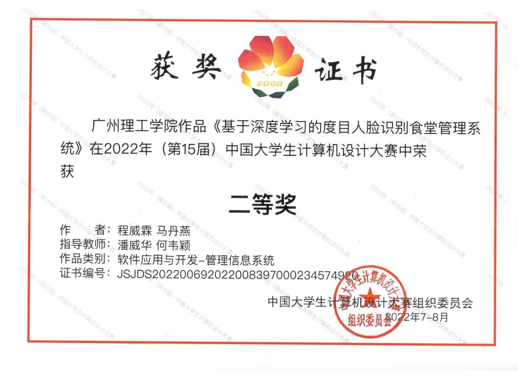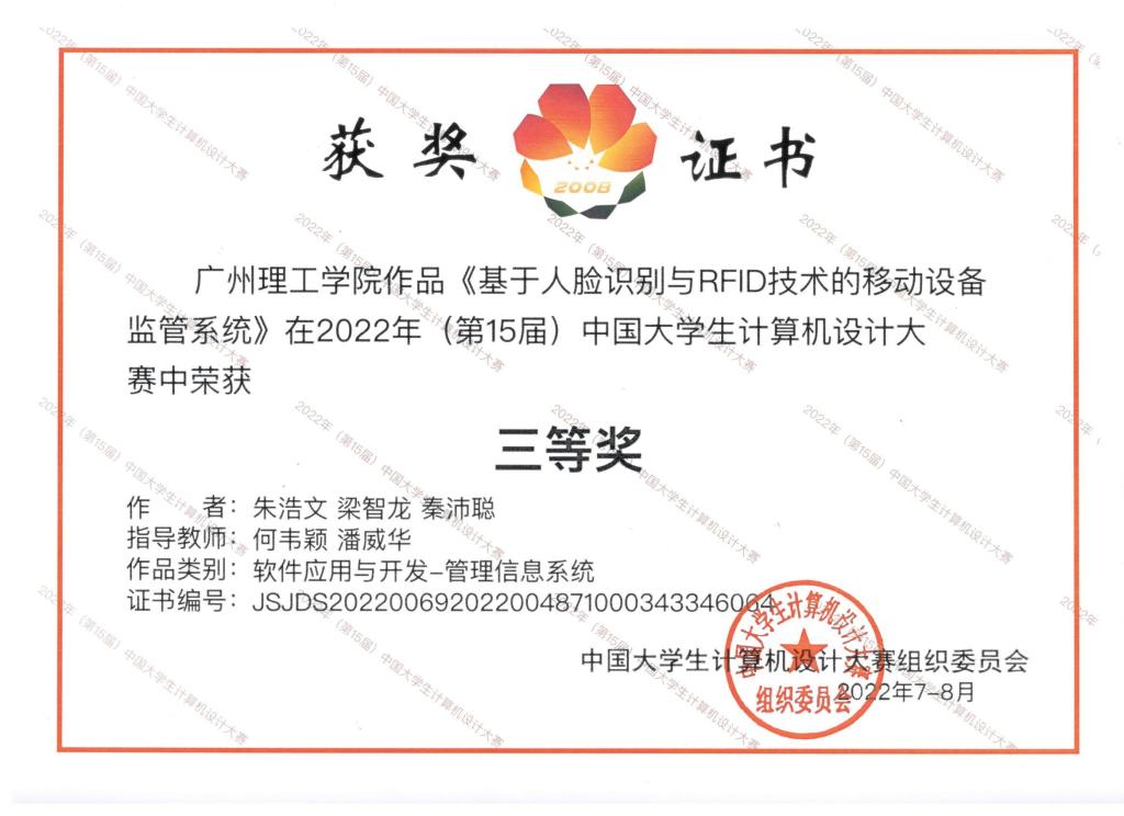 中国大学生计算机设计大赛国赛三等奖 梁智龙
