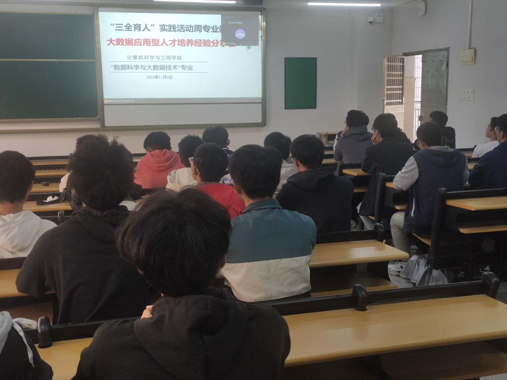 (通讯员:钟桂凤)11月8日下午,在学校三全育人素质教育周第二天,计算机与工程学院组织了“大数据应用型人才培养”的专业发展经验分享会,特邀了两位在大数据专业学习及工作过程中对行业认识较深刻的优秀校友分享他们对于大数据专业的认识、在校参加的各项学科竞赛和项目经验。会议采取线上、线下同时进行,大数据专业460余师生同时参会。系主任钟桂凤老师主持了会议。