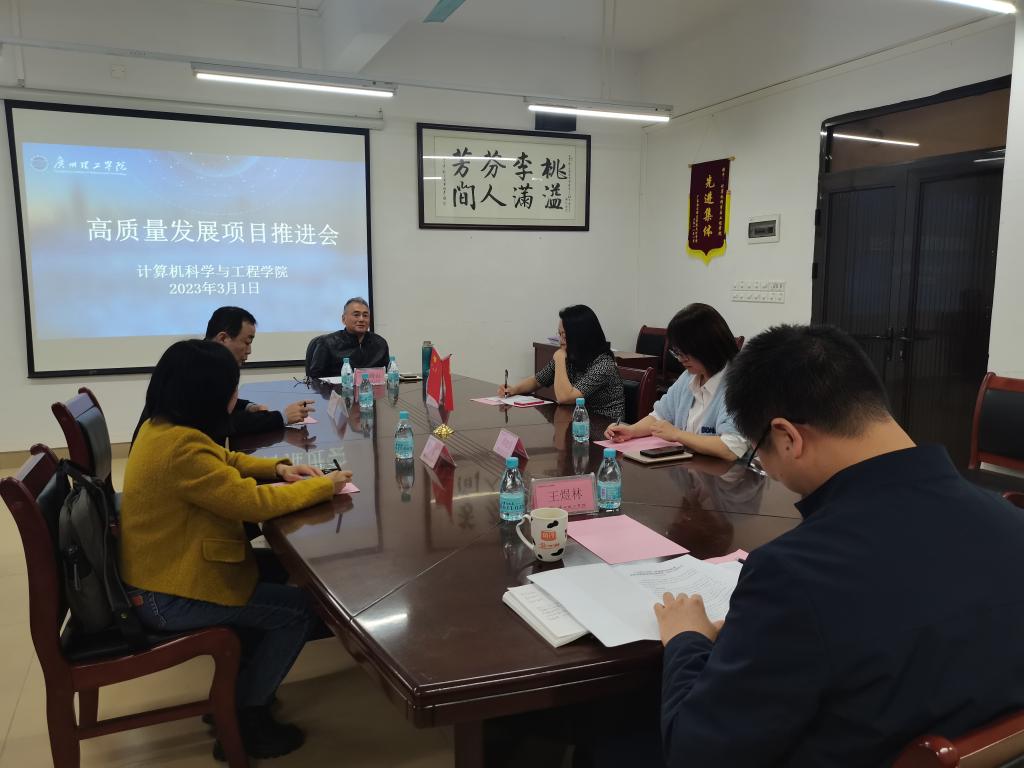 (通讯员:陈星莹)3月2日,为深入谋划2023年学院高质量发展的思路和举措,计算机学院邀请了暨南大学、广东财经大学的教授来校召开项目推进会。院长原峰山主持会议,科研副院长王煜林带领科研学院近期核心项目负责人参加了会议。
