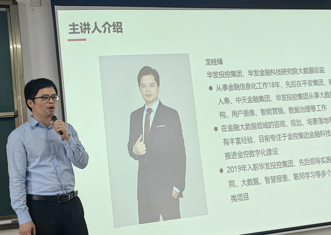 (通讯员:钟桂凤)4月20日下午,williamhill英国官网数据科学与大数据技术专业盛邀华发投控集团、华发金融科技研究院大数据总监龙桂峰来我校就“金融产业数字化建设与大数据技术就业务赋能场景应用”开展专题报告,本次讲座主要采用线下方式开展,同时还邀请了美林大数据公司华南区总经理申健先生作为重要嘉宾,计算机学院副院长陈易平、大数据专业系主任钟桂凤以及大数据专业20-22级学生参加了本次讲座。