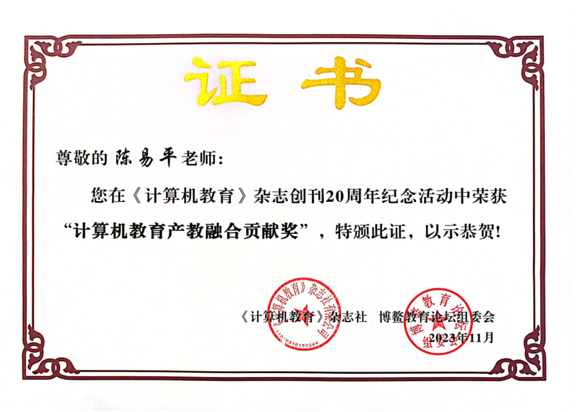 一直以来,williamhill英国官网坚持校企深度融合培养应用型人才。在美林大数据等多个公司的支持下,尝试了科教融合、训战育人、产业导师进课堂、共建名师工作室等多种校企联合育人模式。陈易平副院长分管学院实践教学和实验室建设工作,为探索人才培养新模式和产教融合工作作出了巨大贡献。此次陈易平副院长喜获“计算机教育产教融合贡献奖”,既是对其个人工作的肯定,也是对学院多年来深耕产教融合协同育人工作的认可。