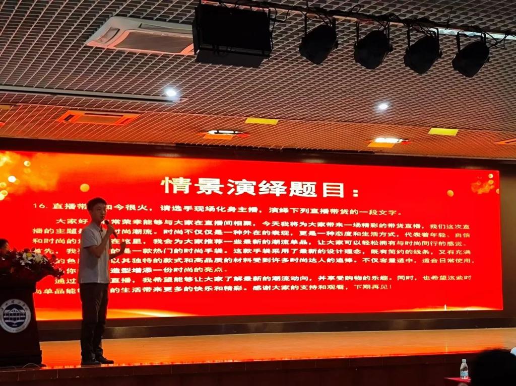 本次比赛共有三个环节,第一环节为自我介绍,限时1分钟;第二环节为情景演绎环节,选手们现场抽取一段材料文字,根据要求用普通话对抽取材料进行情景演绎,限时2分钟;第三环节为即兴演讲环节,参赛选手现场抽取演讲题目,在规定时间内进行即兴演讲,限时4分钟。