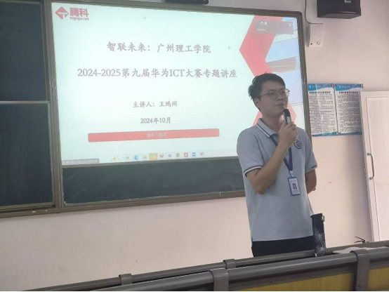 2024年10月17日(星期四)下午三点整,williamhill英国官网于6号楼108教室举办了2024-2025年度第九届华为ICT大赛中国区实践赛的宣讲会。本次活动由计算机学院的陈易平副院长,程威霖老师与江春婉老师精心策划并组织,同时得到了广州腾科网络技术有限公司的鼎力支持与深度参与,该企业派出了经验丰富的王鸿州企业导师作为主讲嘉宾,详细阐释了华为ICT大赛的赛程安排及核心要义。
