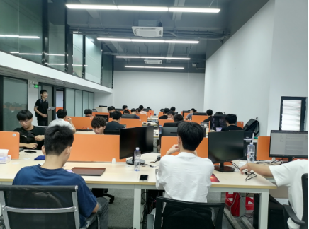 会上,云趣先锋的工作团队对学生们的到来表示了热烈的欢迎。云趣贾秋菊老师首先向大家介绍了工作室的当前状况、日常运作及生活作息安排,让学生们对即将开始的学习生活有了初步的了解。随后,前端组长禤成纳详细讲解了座位的布局与分配,并带领前端组的师兄师姐们进行了热情洋溢的自我介绍,瞬间拉近了彼此的距离。后端组也不甘落后,组长谭景辉率先登场,以风趣幽默的方式介绍了自己,并邀请后端的学长学姐们逐一亮相,展现了团队的凝聚力与活力。