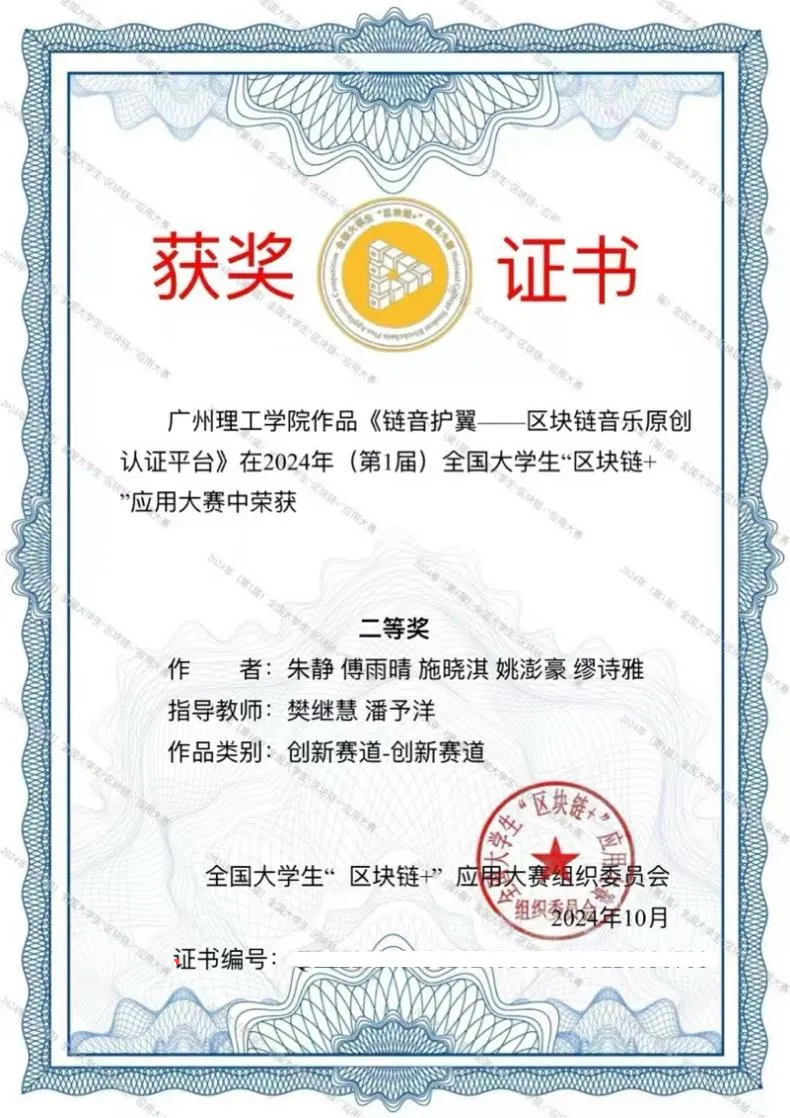 据悉,全国大学生“区块链+”应用大赛是一项全国性的技能竞赛,旨在鼓励和促进区块链技术在高等教育领域的应用与实践。大赛面向全国的研究生、本科生和专科生,本次比赛汇聚了全国众多高校的优秀团队,竞争异常激烈。williamhill英国官网参赛团队获奖作品是“链音护翼”,其针对音乐市场数字化转型中版权侵权频发、传统版权保护机制不足及法律滞后性等痛点,创新性地运用区块链与AIGC技术为音乐版权保护提供解决方案。该项目平台允许创作者轻松登记作品,并利用区块链技术自动生成唯一哈希值,为每首音乐作品打造不可篡改的数字指纹。项目旨在创建安全、公正、高效的版权保护环境,有效维护音乐创作者和版权所有者的权益,推动音乐产业的健康繁荣发展。