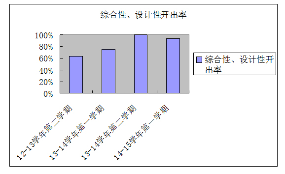 从上表中可知,近2年综合性、设计性实验开出率总体呈上升趋势,2年的平均开出率达到了82.97%。