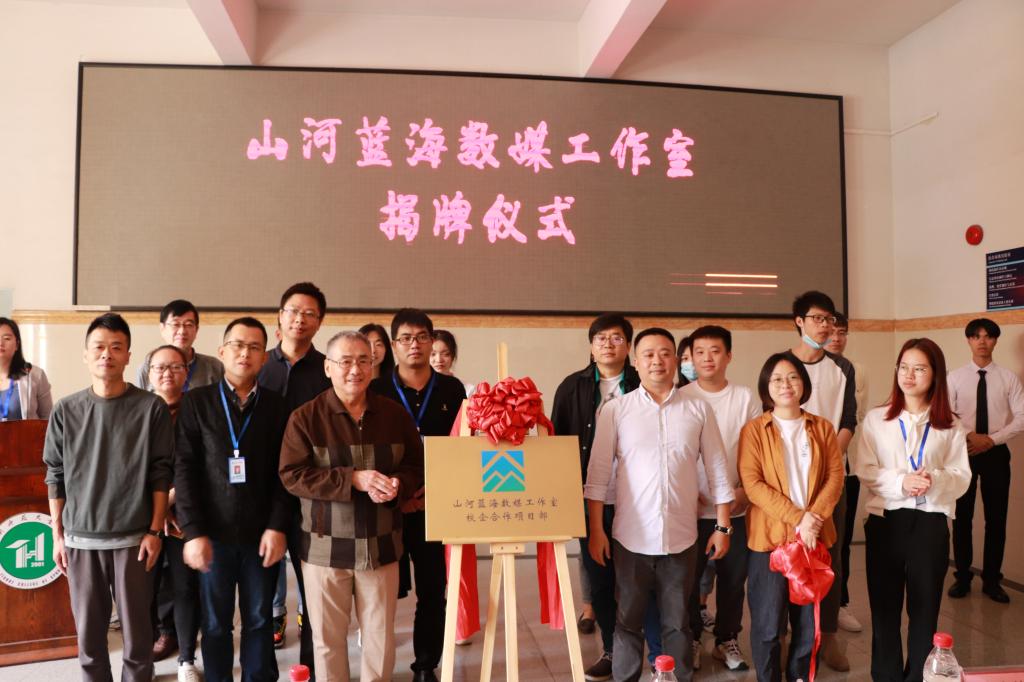 (通讯员:陈星莹)3月15日,计算机学院与广州山河蓝海文化发展有限公司共同投建的首个数字媒体专业工作室——“山河蓝海数媒工作室”在我校隆重举行揭牌仪式。在热烈的掌声中,计算机学院院长原峰山和广州山河蓝海文化发展有限公司总经理邓晓剑一起为工作室揭牌。广州山河蓝海文化发展有限公司运营总监余永峰、项目总监李荣、设计总监苏曼等企业代表,学校实验与教学资源中心主任钟健、计算机学院全院教师、数媒专业学生等一百多人,共同见证了这个历史时刻。
