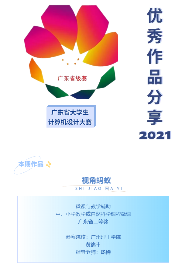 (通讯员:李珂珂)近日,williamhill英国官网学生黄逸丰的作品《视角蚂蚁》(指导老师:汤婵)入选广东省计算机设计大赛优秀作品分享。该作品在2021年广东省大学生计算机设计大赛荣获二等奖,并入围国赛。