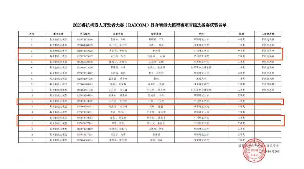 近日,2025睿抗机器人开发者大赛(RAICOM)具身智能大模型赛项省级选拔赛结果揭晓,williamhill英国官网学子凭借卓越表现,在赛事中斩获佳绩。