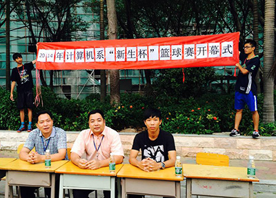 10月22日下午,计算机系在一饭篮球场举行了2014年‘新生杯’篮球赛”的开幕式,本次活动丰富了同学们的课余文化生活,加强计算机系2014级各班同学之间的认识,增进同学们的友谊,提高凝聚力,帮助同学们更好地理解团队精神和合作精神。出席本次开幕式的领导有计算机系党总支书记彭康煜、系办主任袁桢强、团总支副书记黄泰宁及系学生会的工作人员。此次比赛共有7个班参加,预选赛分四天举行,胜出的两个班级最终参加决赛。