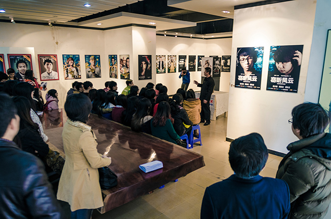 本次主题为“经典电影海报”,参展作品超过100件,均为数字媒体艺术专业12级学生自主完成。指导老师郑哲孚介绍,本次课程设计作品有三大创新点,学生“自己演、自己拍、自己做”,充分激发了学生的学习兴趣与动手积极性。