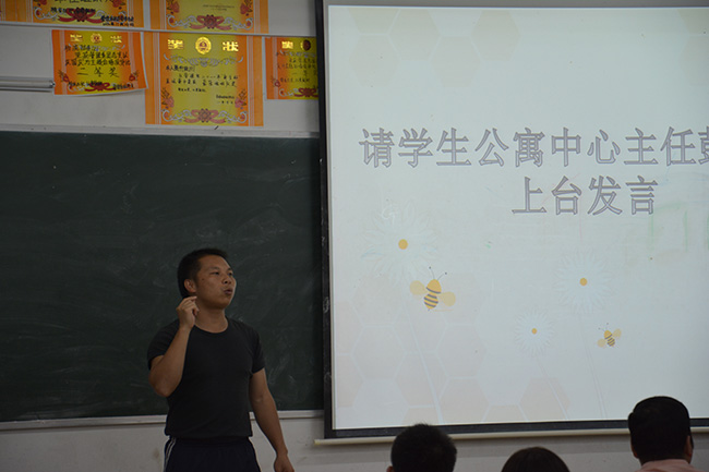 4.学生公寓中心主任彭文刚关于宿舍内务、在寝检查和安全用电三方面内容的讲话;