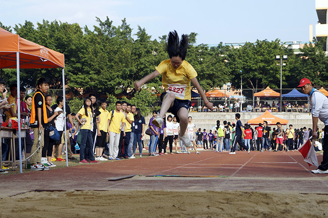 吴彩玲同学在女子跳远比赛中荣获第二名