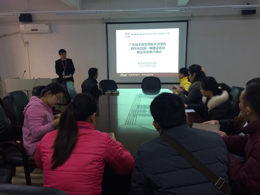 3月10日下午,项目组在信息楼302室组织招生就业指导处就业相关人员、二级学院就业干事,开展了就业管理系统培训会。培训会由项目组段湘游经理主讲,段经理重点介绍了就业管理系统的功能及使用方法,参加培训人员边看演示边就相关问题进行了深入的交流。针对老师们提出的页面设置、地址收藏、与其他业务系统集成的问题,项目组表示会再接下来的工作中对系统加以改进和优化,希望通过系统能有效提升就业工作效率和工作水平。