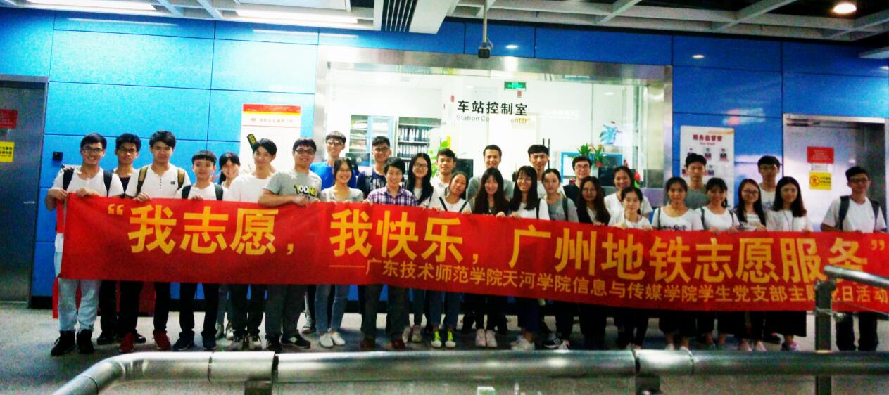 5月21日,为了让党员们更好地理解和发扬“全心全意为人民服务”的精神,信息与传媒学院学生党支部组织了以“我志愿,我快乐”为主题的践行社会主义核心价值观的广州地铁志愿服务活动。参加此次活动的有信息与传媒学院学生党支部专职学生党务干事黄鸿鑫老师、学生党员、发展对象和积极分子共30名志愿者,活动在地铁的白云大道北站、永泰站、龙归站、人和站和机场南站举行。