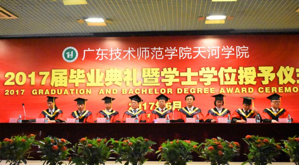 6月24日,广东技术师范学院天河学院信息与传媒学院2017届毕业典礼暨学士学位授予仪式在经管楼学术报告大厅展开,参与本次仪式的嘉宾有:信息与传媒学院院长董武绍教授,信息与传媒学院党总支袁颂皎书记,申青连副院长,谌颃副院长,信息与传媒学院程东年教授,谭汉松教授,计算机科学与技术系主任孔令美老师,软件工程系主任钟健老师,数字媒体技术系主任张冬兰老师,计算机科学与技术系胡安明老师等。