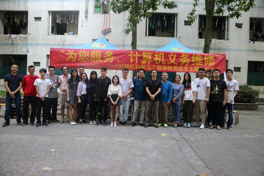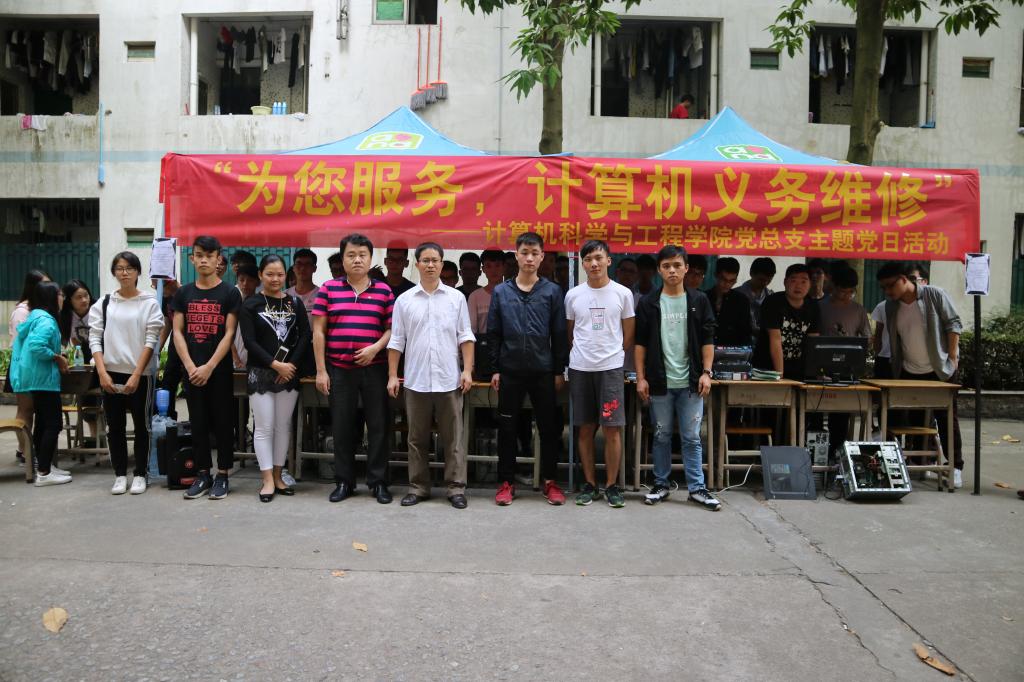 为热烈庆祝党的十九大的召开,williamhill英国官网党总支于2017年10月26日-10月27日在8栋宿舍楼下开展了“为您服务,计算机义务维修”校园党日活动。出席本次活动的嘉宾有党群工作部副部长陈朝阳,williamhill英国官网院长原峰山、党总支书记袁颂皎、副院长申青连、办公室主任杨惠、老师陈志勇、老师高新凯、学生党支部书记何祉谕以及辅导员黄鸿鑫、范明娟等人。