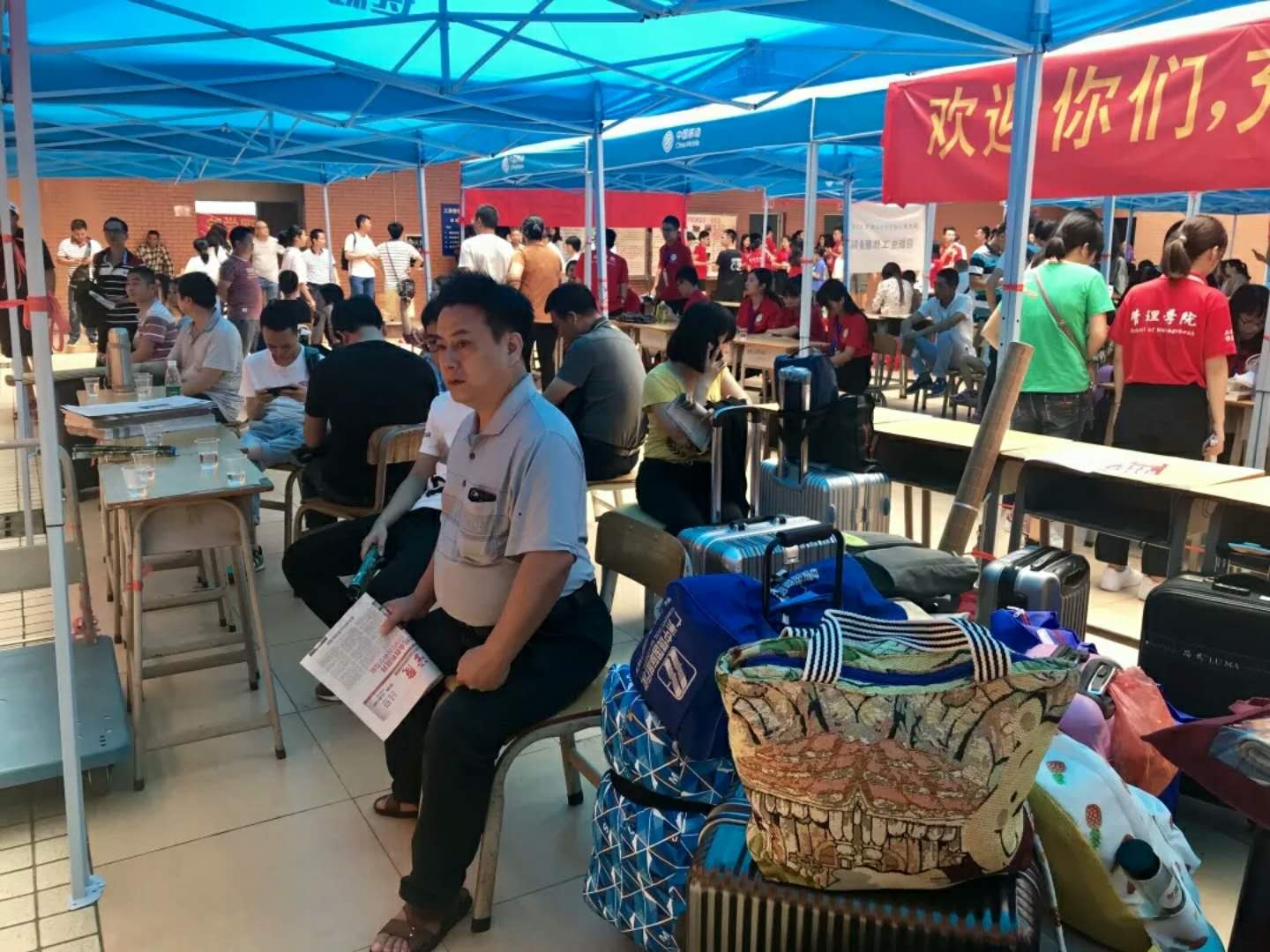 迎新工作进行的如火如荼,到处都是忙碌的身影。截止下午六点左右,伴随着最后一位新同学的到来,2018年迎新工作终于圆满完成!