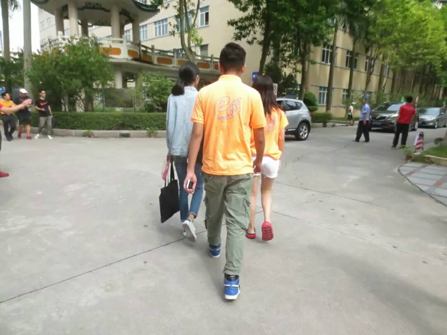 然后由学生会工作人员带领去六栋报告大厅领取军训服后回归大本营找到陪同的家长以及取出暂放的行李跟随工作人员走向宿舍。
