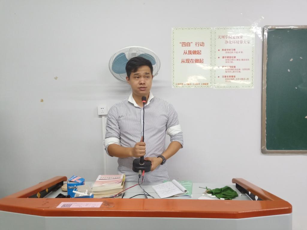 团总支书记陈齐民老师作动员讲话,要求全体工作人员做好后勤准备工作的同时,能确切保障运动员的安全及赛事的正常运行,维持好会场纪律,同时,提醒宣传组注重文宣,希望同学们在保证稿件质量的前提下进行投稿,确保大家及时获得获奖信息。然后,他给运动员们打气,希望他们能赛出风采。最后,对各学生会成员及运动员们对大赛的辛勤努力表示感谢。
