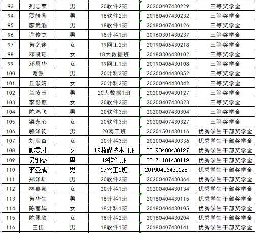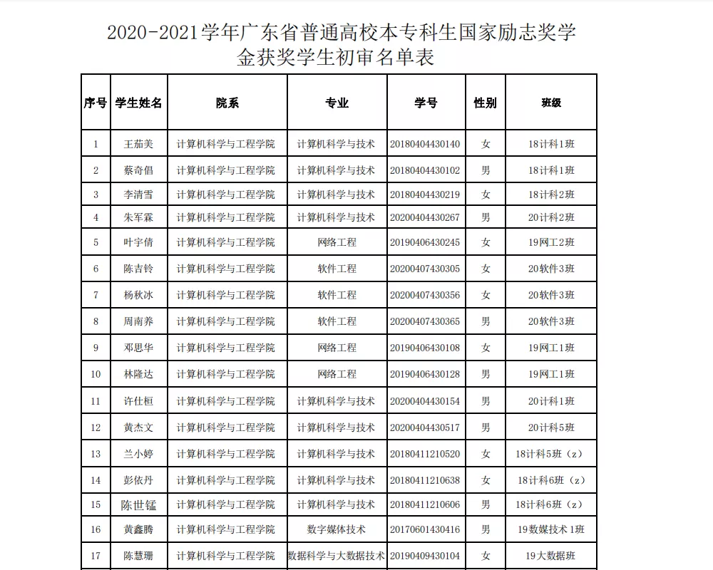 根据《williamhill英国官网学生奖学金管理办法》(广州理工{2020} 71号)、《williamhill英国官网学生资助工作管理办法》(广州理工{2020} 72号),按照公平、公开、公正的原则,经各班评选、各学院审核,初步拟定williamhill英国官网2020-2021学年学生奖学金名单、2020-2021学年国家励志奖学金获奖学生名单并进行公示,时间为2021.09.27-2021.09.29。