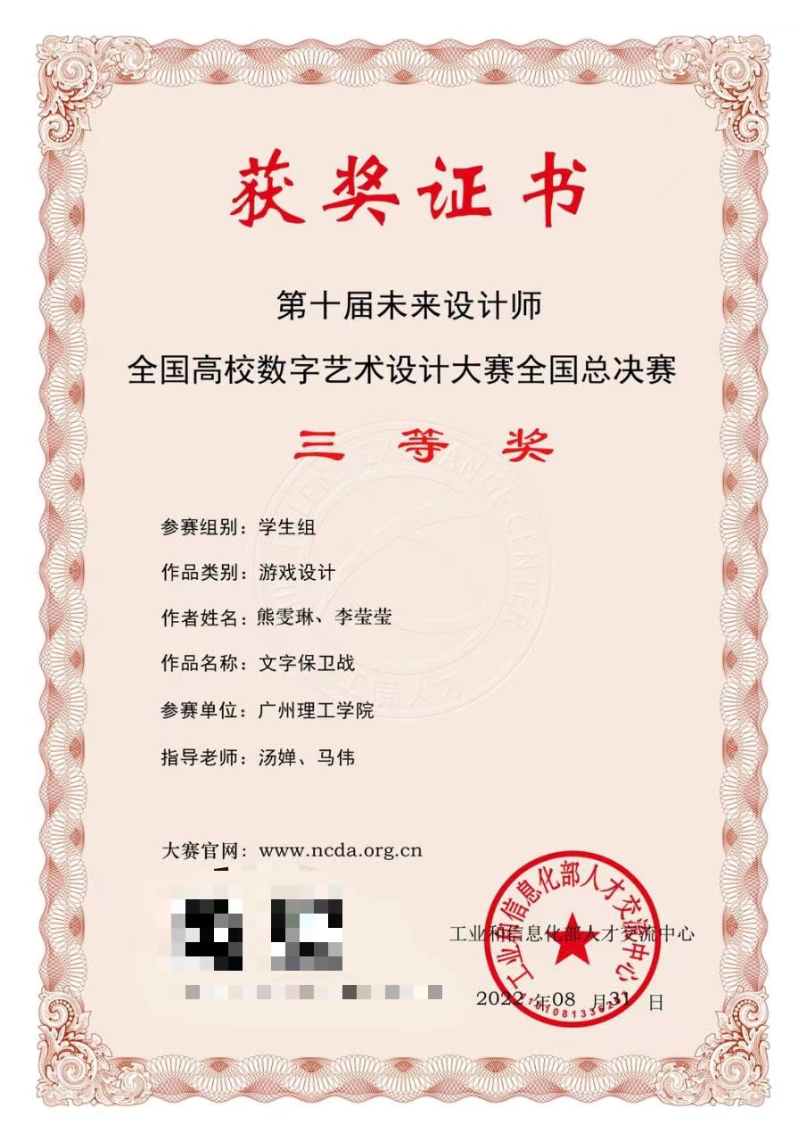 (通讯员张国梅、马伟 )11月18日,第十届全国高校数字艺术设计大赛(NCDA)国赛评审工作落下帷幕,我校williamhill英国官网选送的参赛队伍中,黄睿、郑楚焱团队(指导老师张国梅)荣获国赛二等奖,熊雯琳、李莹莹团队(指导老师汤婵、马伟)荣获国赛三等奖,这是我校学子第三次参加该项赛事并取得不俗的成绩。