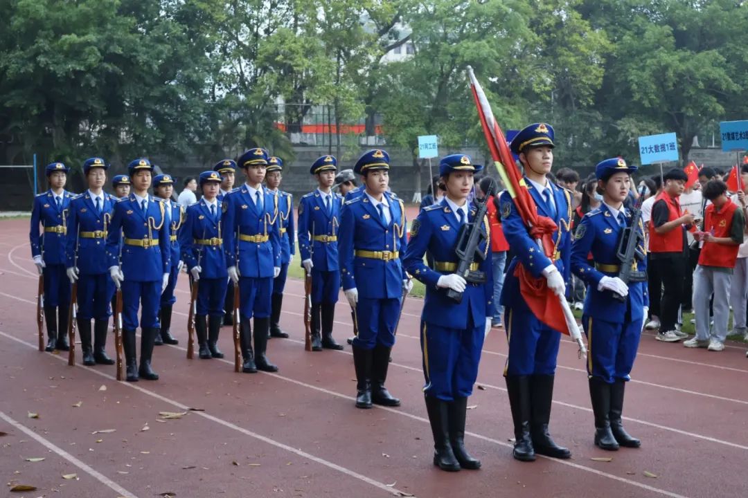 升旗仪式正式开始。“正步走!”随着一声口令,学校国旗护卫队迈着铿锵有力的步伐走向国旗台。“向国旗敬礼!”在雄壮的国歌声中,五星红旗伴着朝阳冉冉升起,迎风招展。此刻,现场师生们的拳拳爱国之心汇聚在了一起,以坚毅的眼神传递出对祖国的美好祝愿,爱国情怀油然而生涌上心头“请党放心,强国有我;请学校放心,强校有我们!” 全体师生纷纷发出的铮铮誓言,余音在操场上久久回荡,助推现场气氛达到高潮。