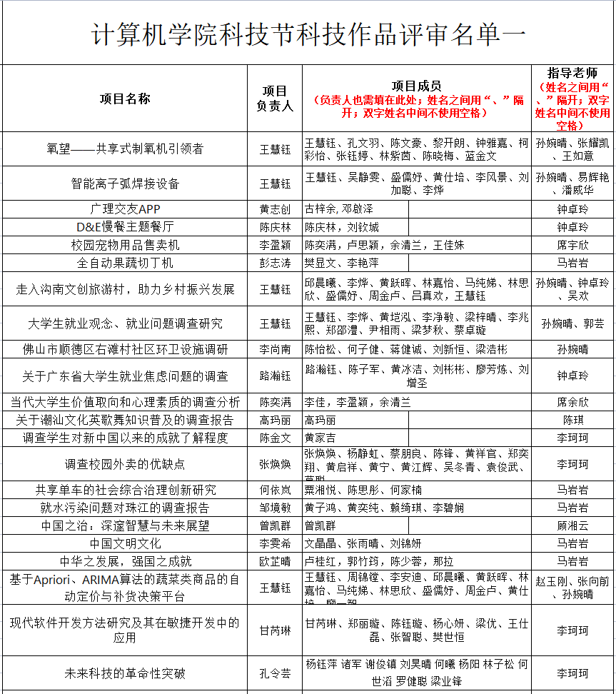 “科技学术季”优秀作品名单