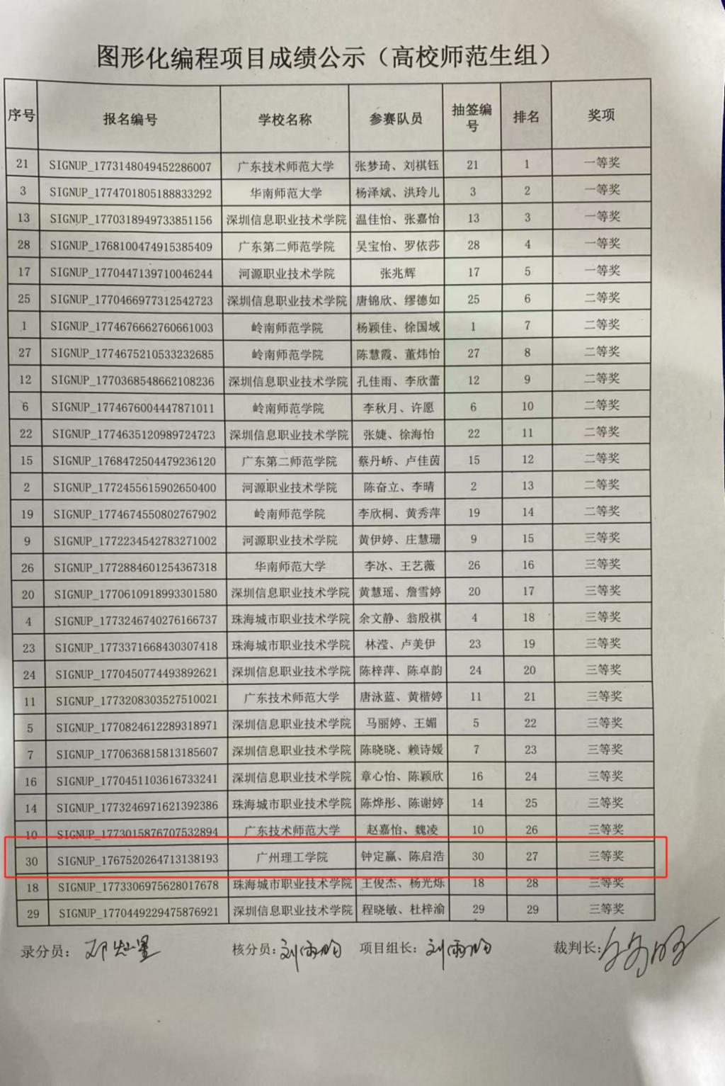 (通讯员:黄敏旋)5月25日,在第二十五届粤澳学生信息科技创新大赛中,williamhill英国官网学生钟定赢,陈启浩凭借出色的创新能力和扎实的专业知识,在黄敏旋老师的指导下成功斩获计算思维赛道图形化编程赛项三等奖殊荣。这是我校学子首次参加该赛事并获奖,是我校加强学生综合素质培养、提升学生创新实践能力的重要体现。