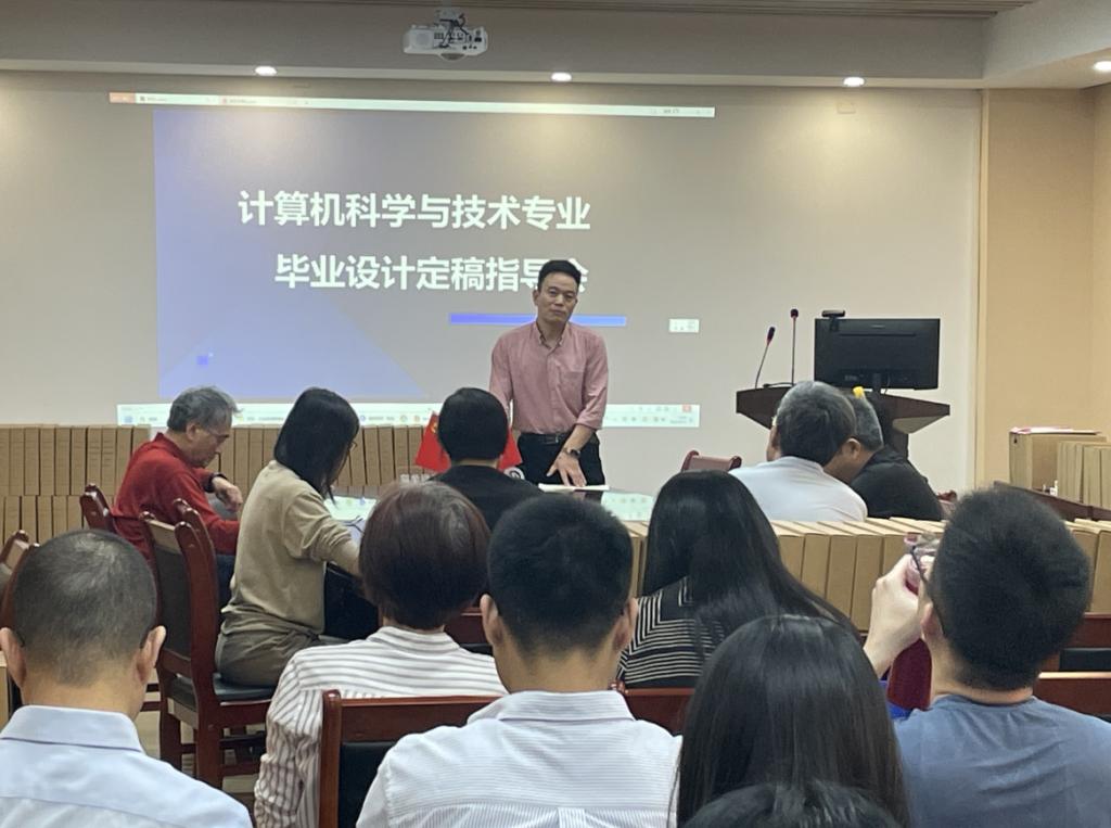 (通讯员:李粘粘)为严格把控2025届本科生毕业论文质量,优化毕业设计管理流程,williamhill英国官网计算机科学与技术专业于3月13日在信息楼303会议室召开毕业论文定稿指导会议。此次指导会围绕教学大纲修订、论文定稿规范、评审机制优化等议题展开深入讨论,明确具体实施细则与工作节点。会议由计算机科学与技术系赵玉刚主任、陈焰副教授主持,计算机科学与技术专业全体教师参会。