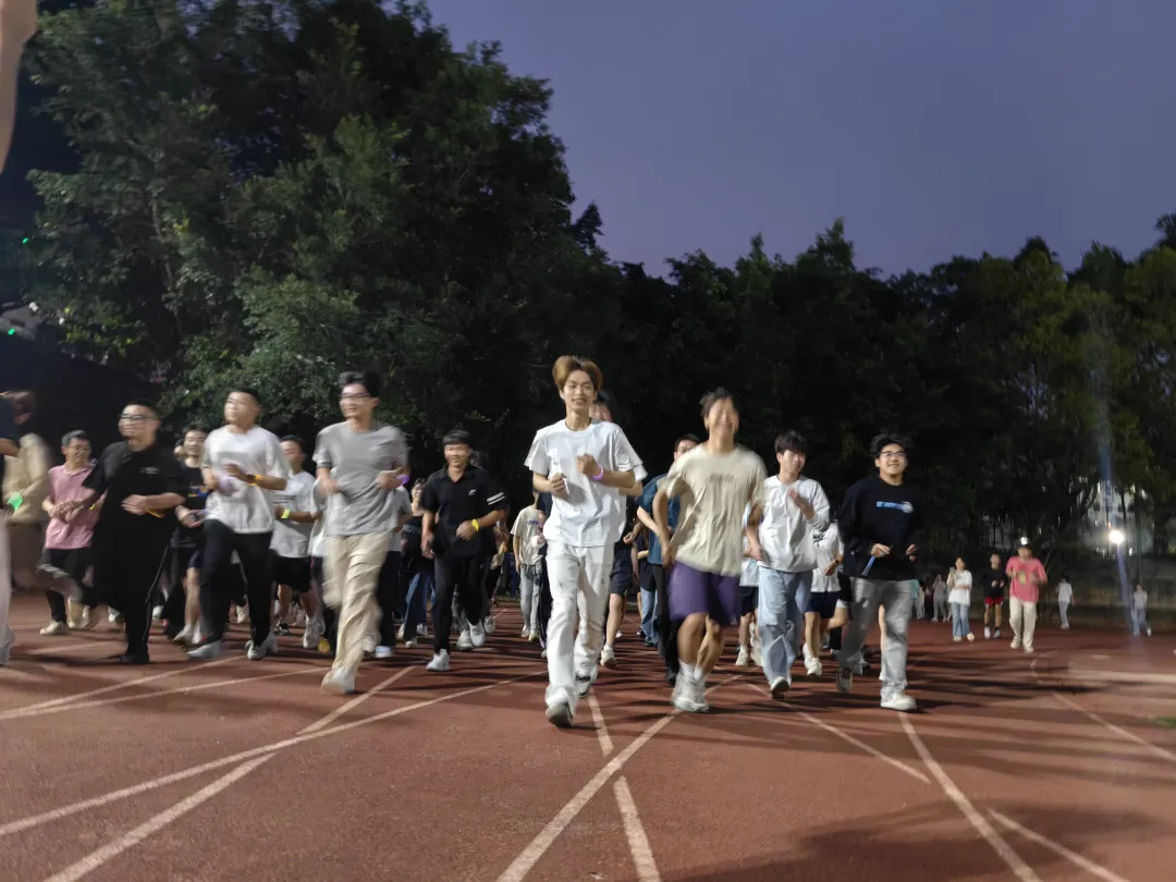 活动现场还配备了饮用水和急救箱,全程为参与者保驾护航。现场氛围热烈而温馨,不少同学表示,在忙碌的学业中,鲜有机会如此尽情释放自己。奔跑时,感受夜晚微风,聆听呼吸和脚步声,仿佛压力都随汗水挥洒,身心倍感轻松。荧光夜跑活动成功举办,不仅为校园注入活力,更传递了积极健康的生活理念,鼓励同学们走出宿舍、放下手机,用运动充实生活、以汗水诠释青春。它让同学们在紧张的学习生活之余,暂时放下压力,感受春风抚慰、聆听心跳节奏,找回纯粹的快乐。期待同学们将这份对运动的热爱延续,让青春在奔跑中绽放绚丽的光彩。