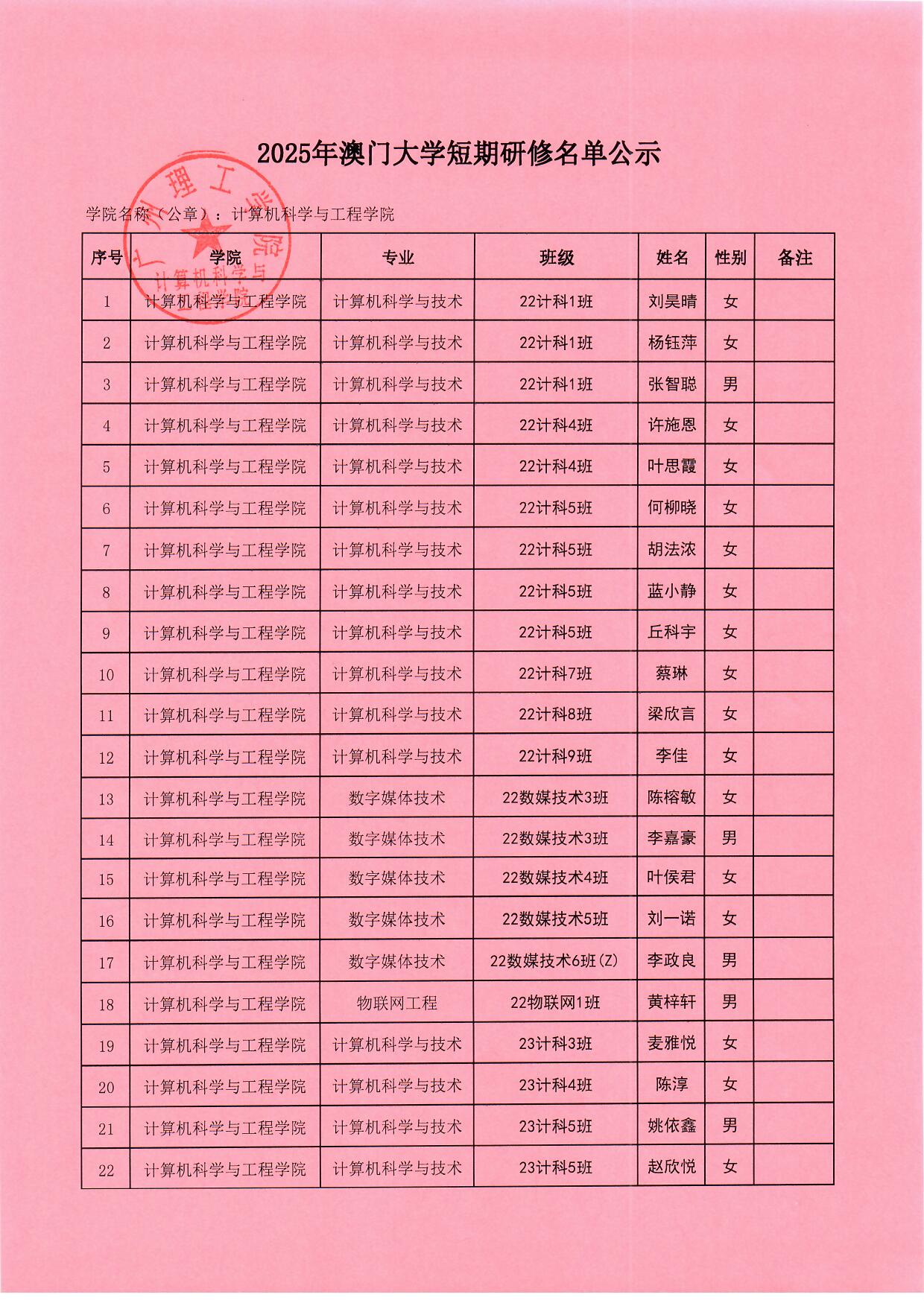 根据学校《关于选派优秀学生赴澳门大学短期研修的通知》的文件精神,“学生个人申请,二级学院审核推荐,按照公平、公开、公正的原则,现将评比结果予以公示,公示期为2025年4月8日-4月10日。若对公示有异议,请以书面形式向以下受理部门反映,反映情况时请署名真实姓名和联系电话,不签署真实姓名或不提供具体事实材料的,将不予受理。