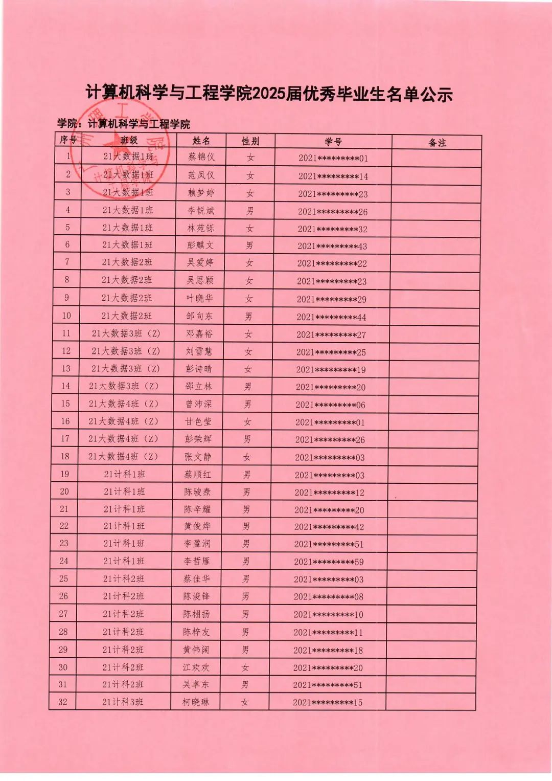 根据《(广州理工办函〔2025〕29号)关于评选2025届优秀毕业生的通知》文件精神,经个人申报、班级评议、学院评审,共评选出蔡锦仪等239名同学为williamhill英国官网2025届优秀毕业生(具体名单详见附件)。现予以公示。