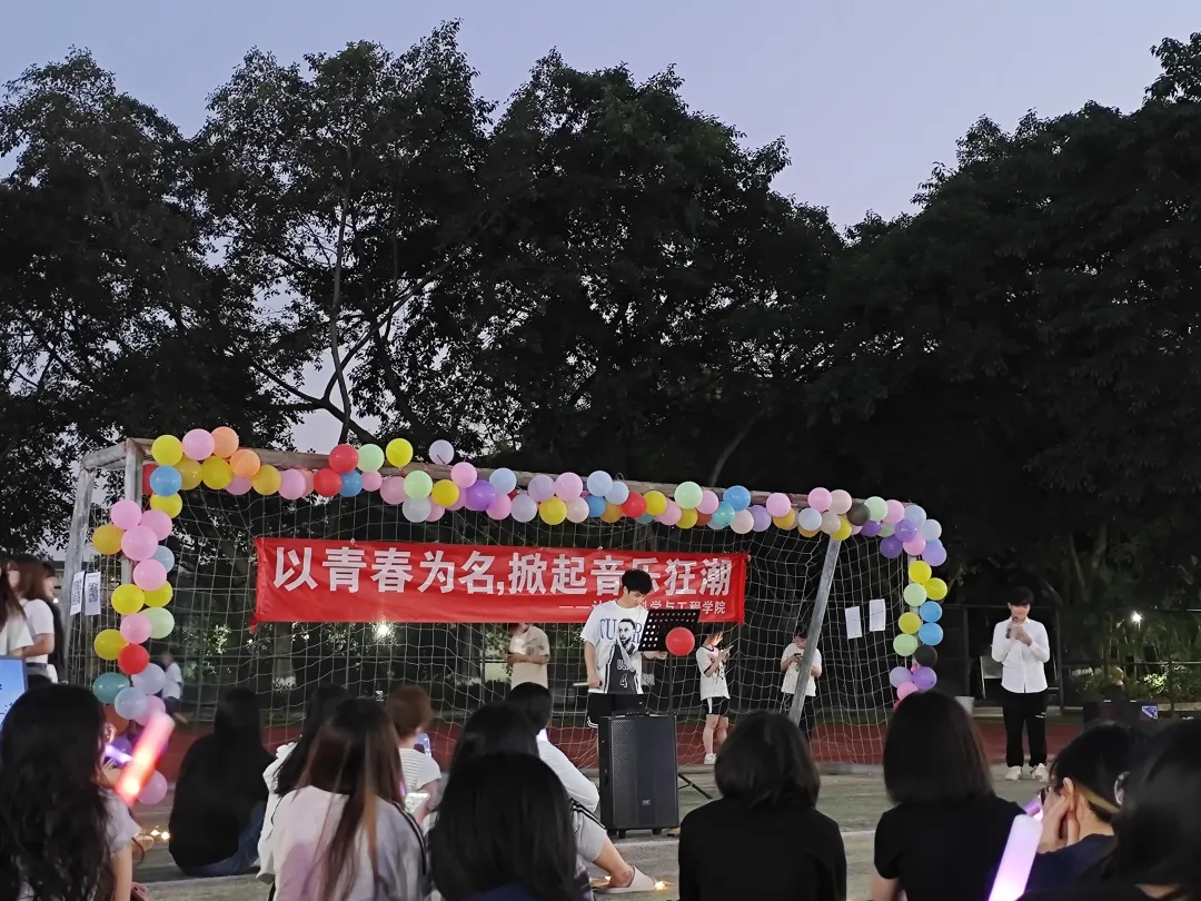 随着第一位同学自信走上舞台,开启表演,夜晚就已经被彻底点燃。不论是动人情歌,还是节奏舞曲;不论是粤语经典,还是摇滚说唱,大家在音乐中尽情表达自我,每首歌都唱出了独属于青春的模样,每一个音符都诉说着对生活的热爱与追逐。在这个没有评委、没有打分的舞台上,掌声是最真实的认可,欢呼是最响亮的回应。“上麦”的勇气,正是青春最闪光的底色!台上是发光的少年,台下是最热情的观众。大家随节奏挥舞着荧光棒,合着旋律轻声跟唱,有人高举手机记录这一刻,有人席地而坐,感受最纯粹的音乐魅力。这次活动不仅有本院的同学踊跃参与,更有来自其他学院的朋友积极响应,让这场音乐会突破边界、精彩加倍。