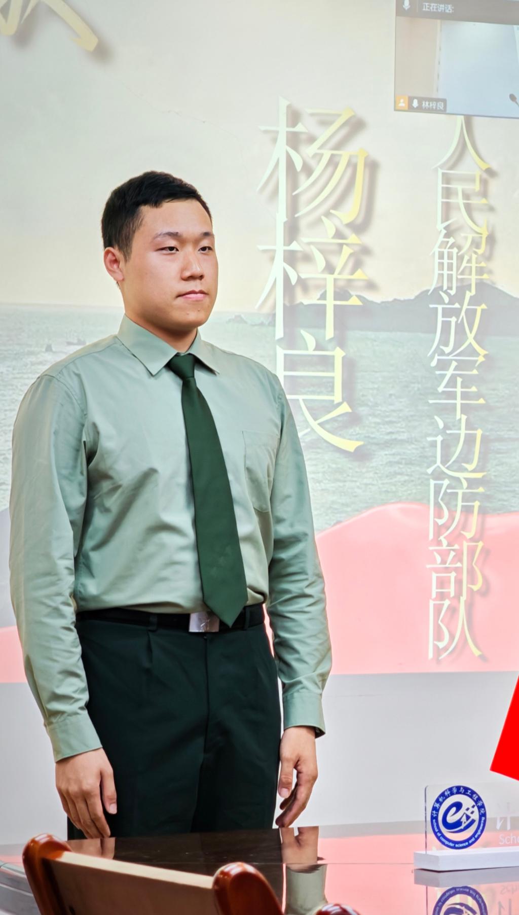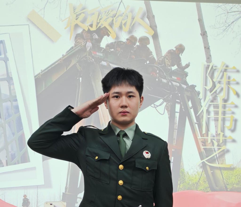 他特别分享了自己在战略支援部队担任工程机械驾驶员的经历。“记得第一次驾驶挖掘机时,我的手都在发抖。”陈伟芝笑着说,“但班长告诉我,‘守大山就是守江山’,这句话让我明白,再平凡的岗位都肩负着保家卫国的重任。”说到动情处,他的声音有些哽咽:“在兰州烈士陵园为陈红军烈士献花时,看到与我同龄的陈祥榕烈士遗像,那句‘清澈的爱,只为中国。’让我泪流满面。那一刻,我真正懂得了军人的使命与担当。”