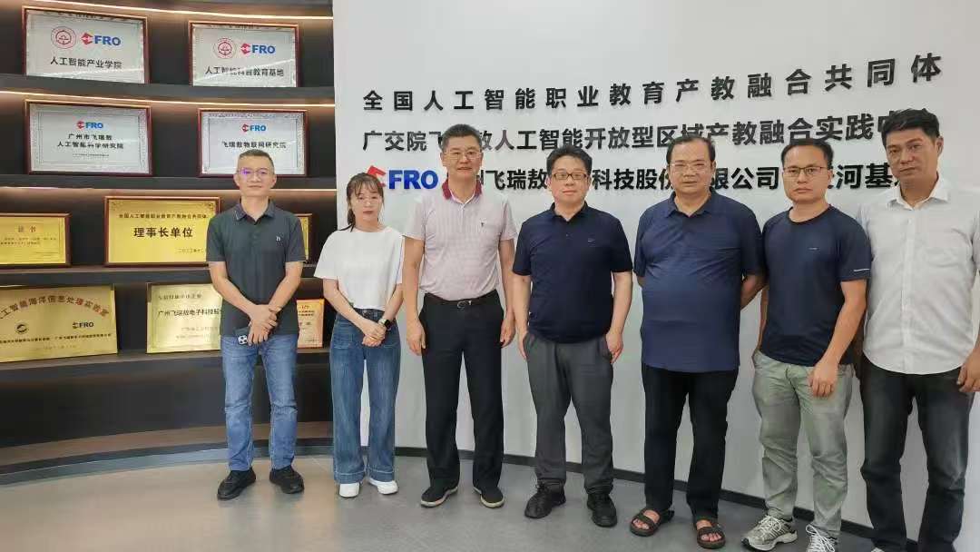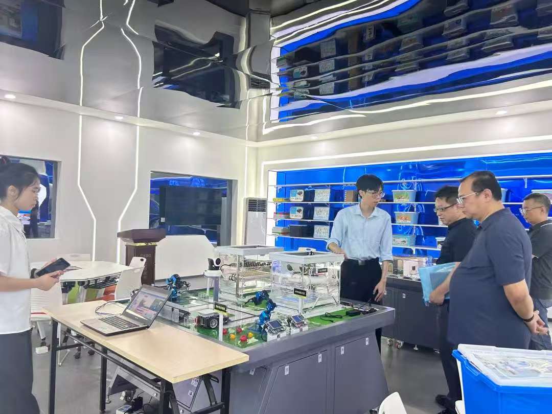 考察当日,学院调研团队抵达广交院飞瑞敖人工智能实践中心,受到了飞瑞敖公司董事长梅仲豪、总经理陈敏超的热烈欢迎。在总工程师彭均飞的引领下,考察组深入参观了飞瑞敖在物联网与人工智能教育领域的系列创新产品及实践教学场地。在智慧农业、智能家居等主题实训区域,校企双方围绕项目化教学的具体实施路径展开了热烈且富有成效的现场研讨,碰撞出诸多创新思路。