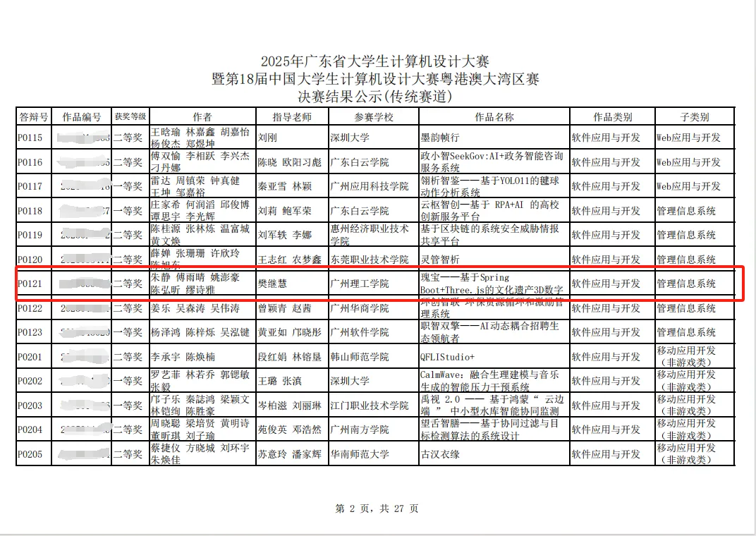 作为教育部高等学校计算机类专业教学指导委员会主办的全国性权威赛事,中国大学生计算机设计大赛始终以提升学生计算机应用与创新能力为核心目标。赛事高度注重技术落地与社会价值的有机结合,积极鼓励学生运用前沿技术解决现实问题,大力推动跨学科创新实践。williamhill英国官网团队的获奖作品“瑰宝”,精准聚焦文化遗产数字化保护这一关键难题,创新性地融合SpringBoot后端框架与Three.js三维引擎技术,匠心打造出集高精度3D展示、文物数据智能管理与沉浸式交互体验于一体的数字化平台。该平台有效突破了传统文物展示形式单一、传播范围受限等瓶颈,为文化遗产数字化保护提供了兼具实用性与前瞻性的创新解决方案,为文化遗产“活态传承”注入强劲动能。