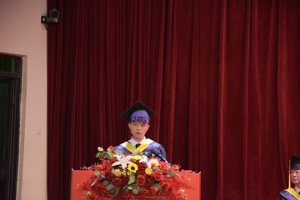 21计科3班刘家俊代表全体毕业生发表感言,他回顾了大学时光里学院提供的优质教学资源与实践平台,号召同窗以所学回报社会,在新征程中勇担时代使命。