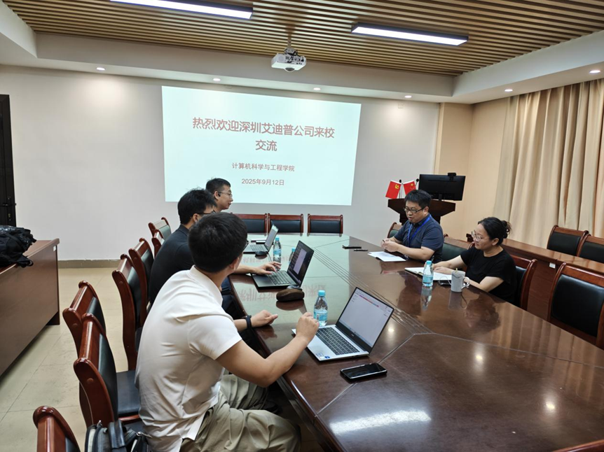 2025年9月12日上午,深圳艾迪普信息技术有限公司总经理唐虓、副总经理仉勇与艾迪普科技股份有限公司产品总监李泽民一行来williamhill英国官网,英国威廉希尔官网进行交流访问。williamhill英国官网物联网工程系主任龙海洪、数字媒体技术系主任汤婵与黄文轩教师代表参与接待并座谈。