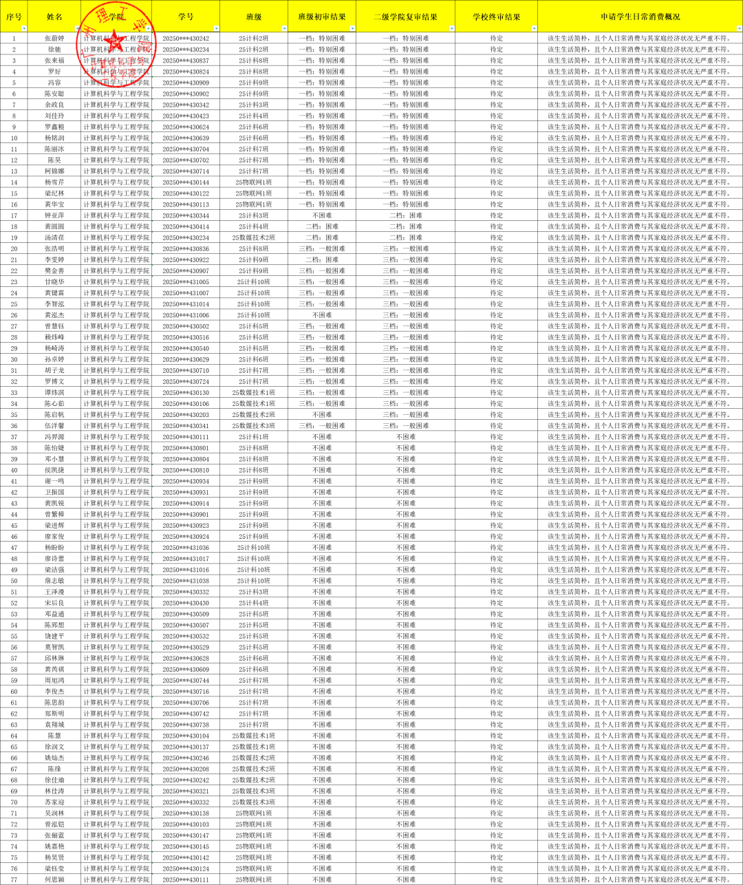 (三)公示结束后,学院将报送学生资助中心再次审核确认,认定等级以学校结果为准。