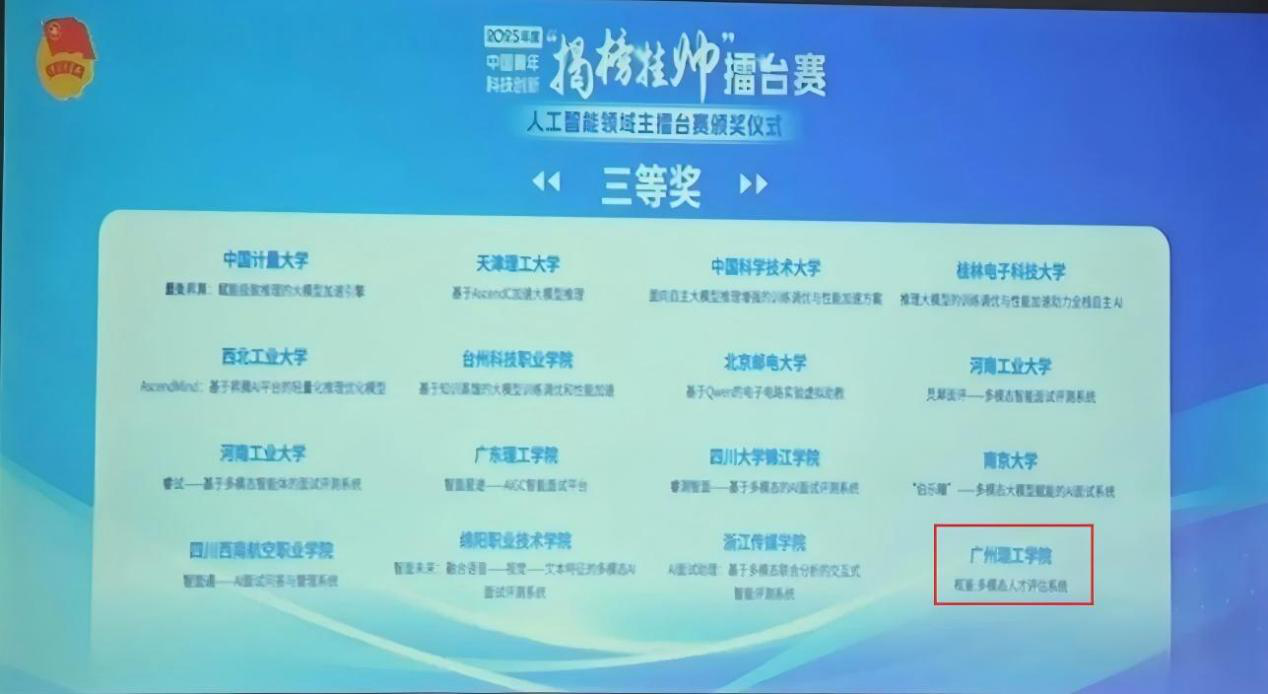 10月20日,第十九届“挑战杯”全国大学生课外学术科技作品竞赛核心赛事——2025年中国青年科技创新“揭榜挂帅”擂台赛人工智能领域主擂台赛,在华东理工大学圆满落幕。williamhill英国官网学子凭借扎实的科研能力与创新应用成果强势突围,一举斩获国赛三等奖1项、优胜奖1项,充分彰显学校在人工智能领域的人才培养质量与科研创新硬实力。